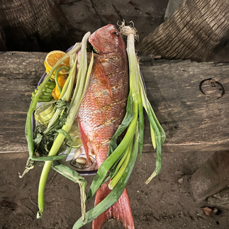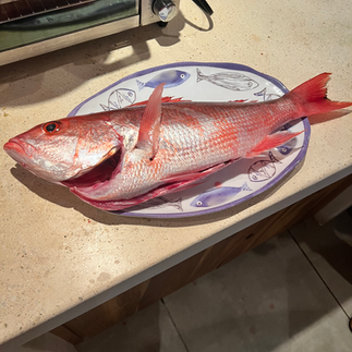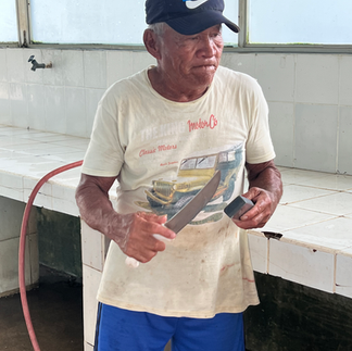 Check out what Valeria and Daniel did with this fish below. When I met this fish at the Pescaderia , it was 1 hour out of the water. We followed its journey all the way to our bellies. The guy cutting up the fish was also like a ball busting Costa Rican comedian, and maybe a legendary diver and swimmer. His arms did not look like real human arms. They looked more like how Michael Phelp's has slight body anomalies that only help him with swimming. He had enormous forearms and huge hands. Daniel told stories how this bro moves through the water like Aquaman. I witnessed him make fun of me like we were at a Comedy Central Roast.... So if his swimming is anything like his ball busting, then I gotta see this guy in the water.
